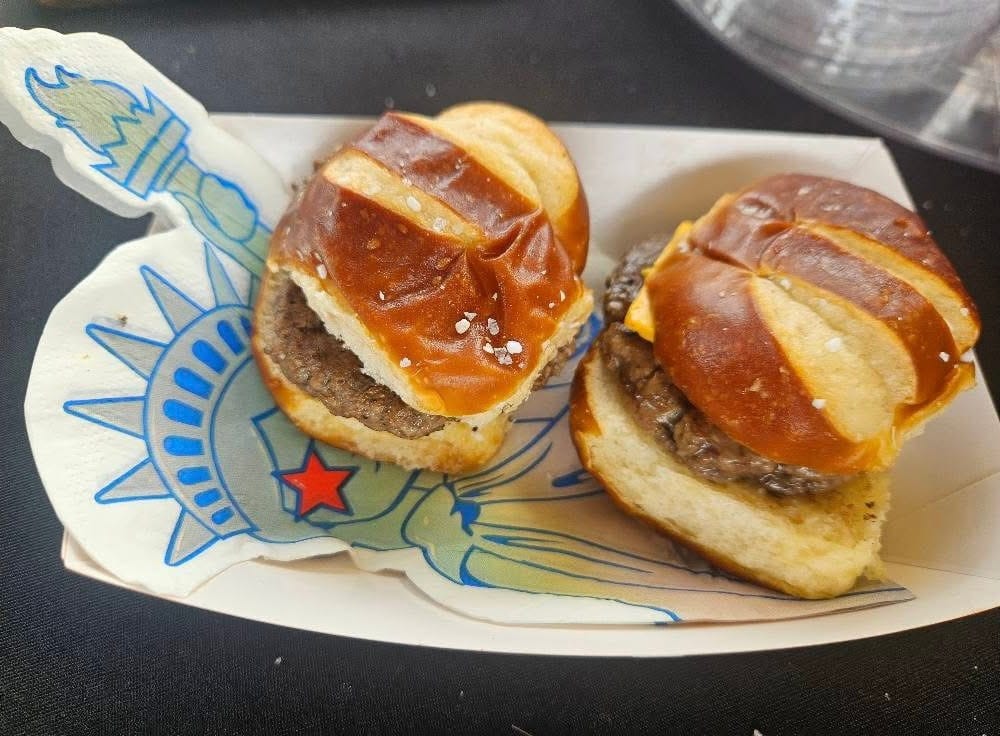 2 cheeseburger sliders with a choice of brioche or pretzel buns